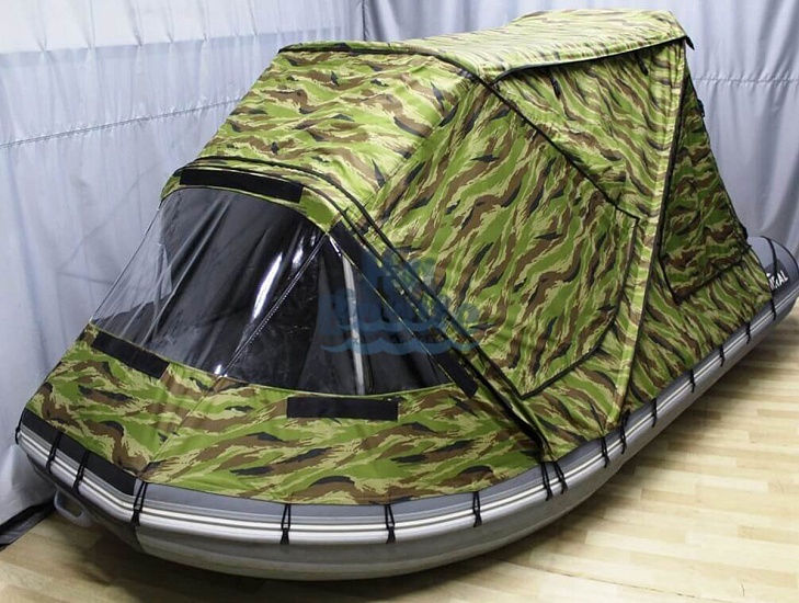 Полноценный ходовой тент на основе комбинированного тента и тента трансформера. Особенностью является наличие люка-бойницы в крыше для охоты из лодки
