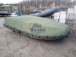 Тент охватывает лодку от носа до транца, обеспечивая полную защиту от погодных условий, пыли и загрязнений.